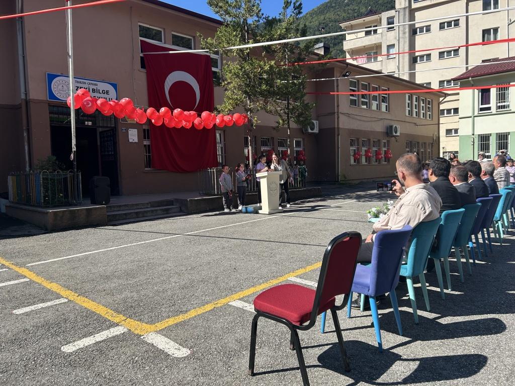 Okulumuzda 2025-2026 eğitim öğretim yılının başlangıcı dolayısıyla İlköğretim Haftası kutlama programı düzenlendi. Törene, İlçe Kaymakamımız Sayın Ali SAPMAZ ve İlçe Milli Eğitim Müdürümüz Sayın Ahmet ÇAMURALİ de katılarak öğrencilerin heyecanına ortak oldular.Saygı duruşu ve İstiklâl Marşı ile başlayan programda, öğrencilerin şiir ve gösterileriyle renklenen kutlama, toplu fotoğraf çekimiyle sona erdi.